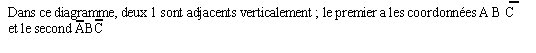 b) Les carrés d’un diagramme de Karnaugh sont désignés de manière que les carrés adjacents soit horizontalement, soit verticalement n’aient qu’une variable qui soit différente.