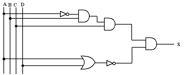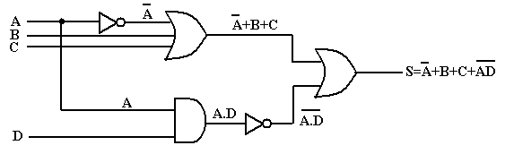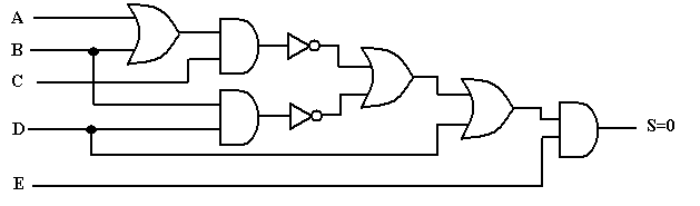 Exercice 4 : Déterminer le niveau de sortie du circuit suivant pour le cas où A=E=0 et B=C=D=1