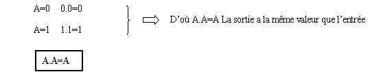 Théorème 2 : la mise en fonction « ET » d’une variable A avec 1 donne toujours A. Ce qui évident si on compare avec la multiplication ordinaire.