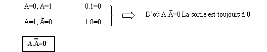 Théorème 4 : la mise en fonction « ET » de la variable A avec son complément donne 0