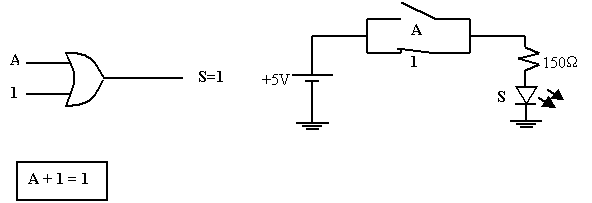 Théorème 6 : la mise en fonction « OU » d’une variable A avec 1 donne toujours 1.
