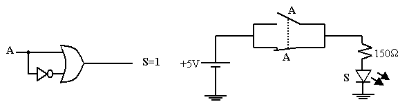 Théorème 8 : la mise en fonction « OU » d’une variable A avec son complément donne toujours 1.