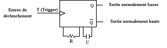 Dès que le monostable est déclenché, ses sorties passent dans l’état opposé (Q = 1 et (Non Q)=0).