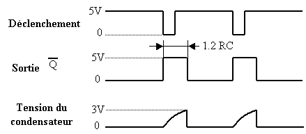 Ainsi chaque impulsion négative appliquée sur (2) donne naissance à une impulsion ayant la durée d’environ 1.2 x R x C.