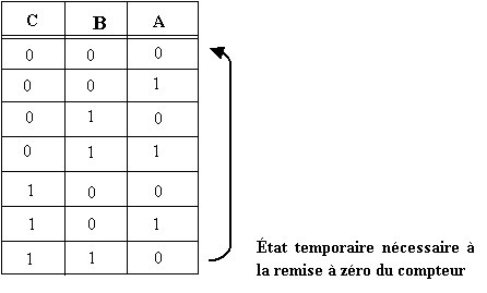 On peut donc dire que ce compteur va de 000 (zéro) à 101 (cinq) puis recyclé à 000.