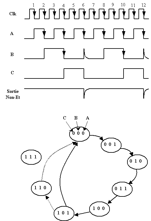 Cette condition survient quand le compteur passe de l’état 101 à l’état 110.