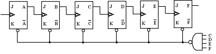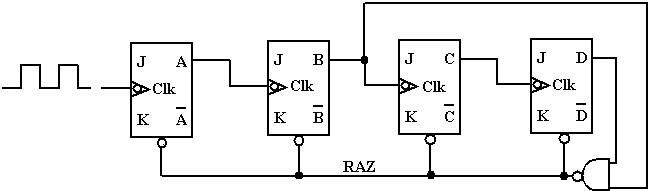 Toutes les entrées J et K sont supposées à 1.