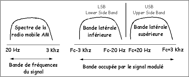 - Bande latérale unique BLU ou SSB : 1.705 Mhz à 28 Mhz