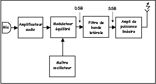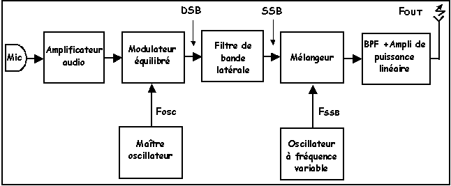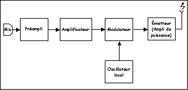 §         Oscillateur local : il fournit le signal haute fréquence qui va servir de porteuse au signal audio.