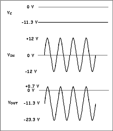 Si le signal d’entrée est élevé, la tension appliquée réduit le courant de l’émetteur et par conséquent le gain de l’étage. Au contraire lorsque le signal est faible, la tension appliquée est moins élevée, ce qui donne naissance à un courant émetteur plus élevé et à un meilleur gain.