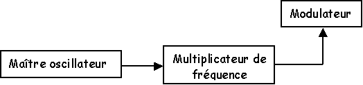 Remarque : L'émetteur est rarement constitué d'un seul étage oscillateur. Comme il est difficile de maintenir la stabilité de fréquence de l'oscillateur au fur et à mesure que la fréquence s'accroît, on a recourt à un multiplicateur de fréquence (exciter).