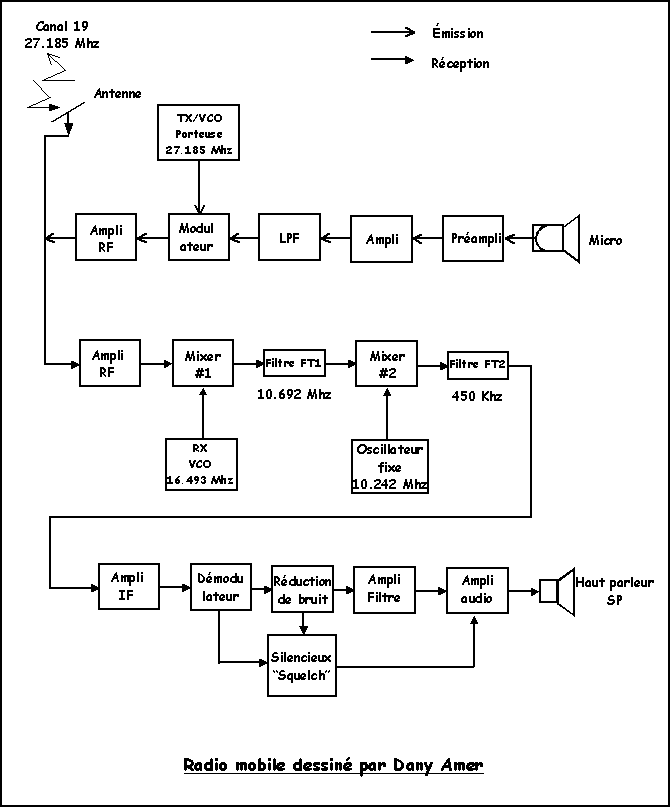 26.965 Mhz à 27.405 Mhz, IF1 = 10.7 Mhz