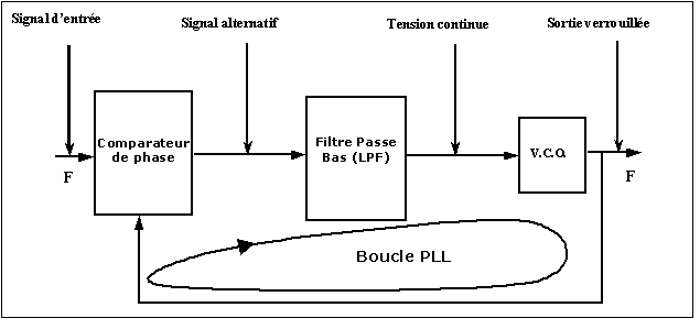 La figure suivante représente le schéma fonctionnel d’une boucle à verrouillage de phase dans sa forme la plus simple.