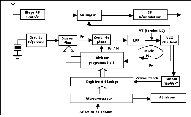 Le principe consiste à contrôler la fréquence de l'oscillateur local des sélecteurs de syntonisation. Afin d'obtenir une grande stabilité de l'oscillateur local, on le compare à un oscillateur à quartz par l'intermédiaire d'un diviseur programmable.