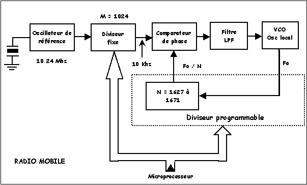 Le taux de division correspondant à chaque canal est contenu dans une mémoire morte R.O.M. du microprocesseur. Le transfert d'un taux de division appelé par l'utilisateur vers le diviseur programmable permet le réglage de l'appareil sur la station désirée.