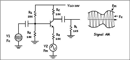 Le principe consiste à appliquer le signal venant de l’antenne à l’émetteur et à la base d’un amplificateur base commune dans des proportions bien définies. Si le pourcentage de modulation dépasse momentanément 90 %, le transistor passe en blocage et l’audio ne sera pas amplifié et cela implique qu’il n y aura pas de crachement dans le haut parleur lors de gros bruits.