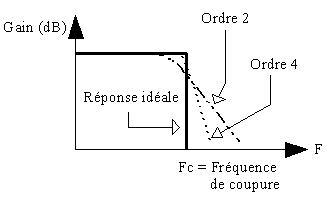 L’ordre de ces filtres est de 2. Il existe des filtres d’ordre 3, 4 etc. Pour obtenir un filtre d’ordre 4, on peut monter deux filtres d’ordre 2 en cascade.