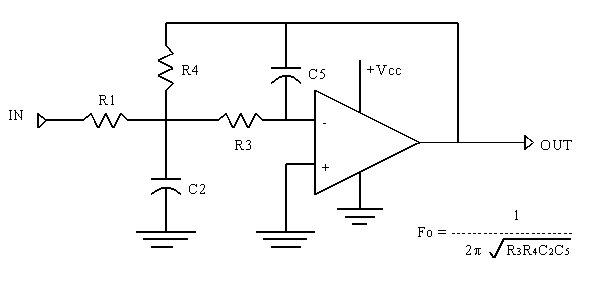 Schéma de montage d’un filtre passe-bas de Rauch :