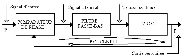 . Lorsque la fréquence du VCO est égale à la fréquence d’entrée, le cycle s’arrête, la boucle est alors verrouillée.