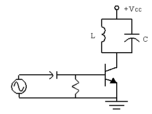 La figure suivante donne un montage possible avec transistor. Les impulsions que reçoit la base sont amplifiées et transmises au circuit LC qui oscille au rythme des impulsions d’entrée.