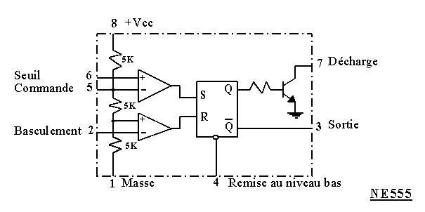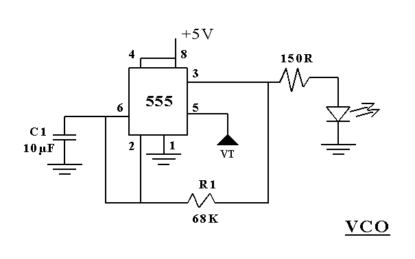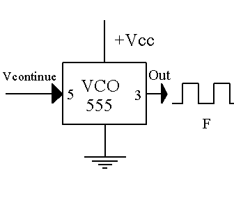 Nous avons vu dans le laboratoire que l’application d’une tension continue à l’entrée de commande (broche 5) faisait fonctionner une minuterie 555 en oscillateur à fréquence réglée par variation de tension.