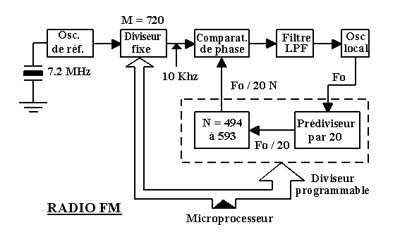 Fréquences porteuses = 88.1 Mhz à 107.9 Mhz (100 stations)