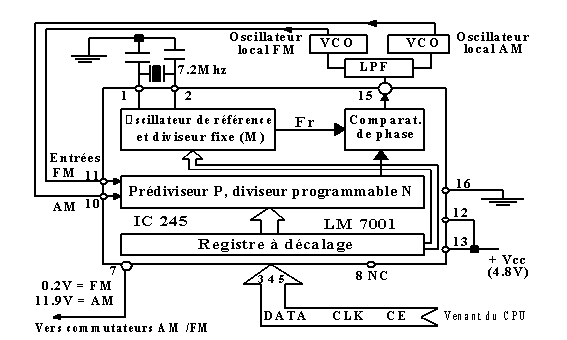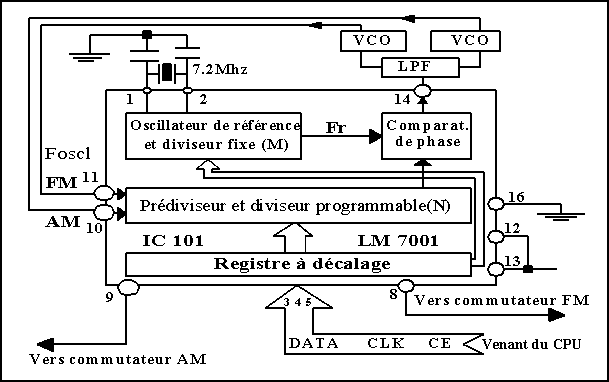 . Sortie verrouillée : la sortie verrouillée est appliquée au mélangeur (Mix) pour produire la fréquence intermédiaire.