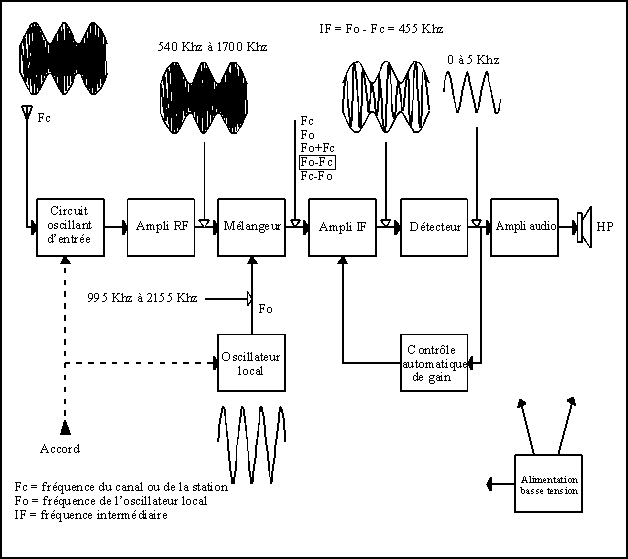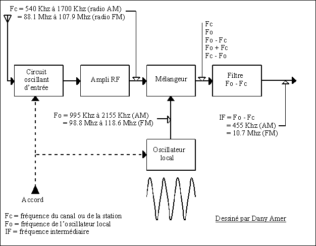 IF = Fo - Fc (Fo = fréquence de l’oscillateur local, Fc = fréquence de la station syntonisée)