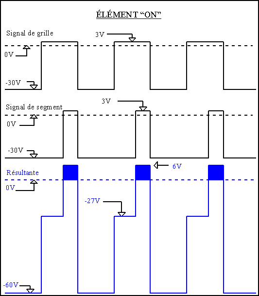 Chaque grille est elle-même divisée en un maximum de 9 éléments ou segments (S0 à S8) commandés par un “signal segment” provenant du microprocesseur.