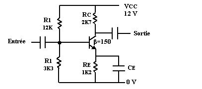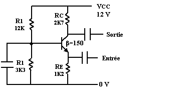 appliquée à un pont diviseur formé par la résistance de collecteur et la résistance