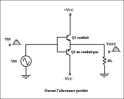 durant les crêtes positives, pour lesquelles le transistor conduit pendant un