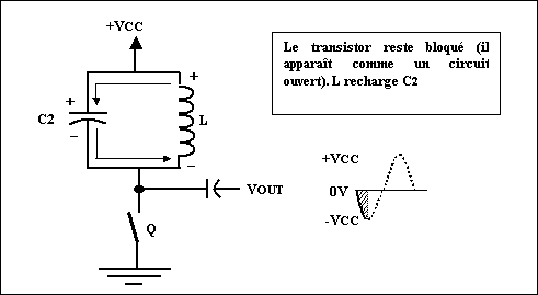 disparaît et recharge le condensateur mais dans la direction contraire à la