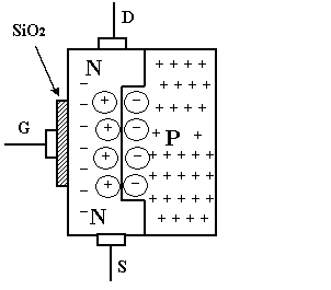 Avec une tension de grille négative, les charges négatives de grille repoussent les électrons de conduction du canal laissant les ions positifs à leur place.