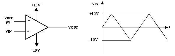 Pour donner une idée de la grandeur, si vous appliquez une tension différentielle de 1 mV (1.10-3 V) aux entrées, la sortie serait de 200V. Il est bien évident qu'avec une alimentation de 15V, vous ne pourrez obtenir cette valeur, vous atteindrez seulement la tension de saturation plus ou moins égale à l'alimentation.