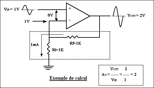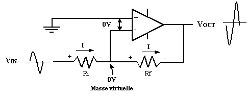 Le signal de sortie sera en opposition de phase par rapport au signal d'entrée |