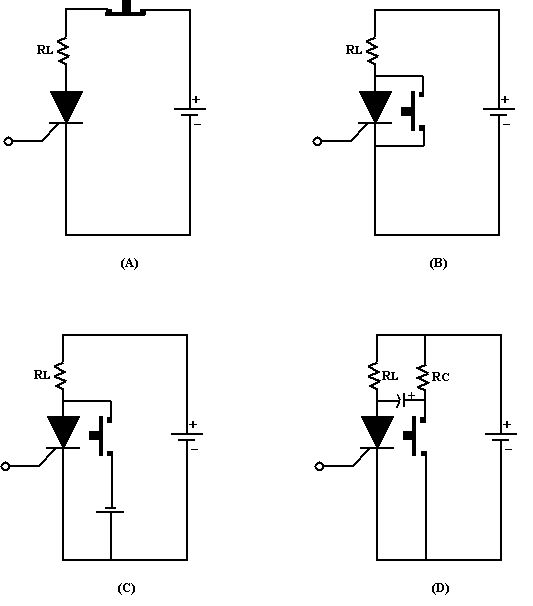 circuit A est le plus simple. On place entre l’alimentation et la gâchette,