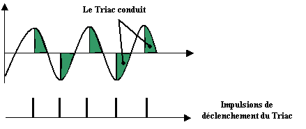 du triac, l’impulsion de déclenchement à la gâchette amorcera le SCR