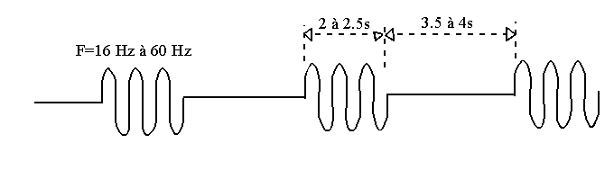 3.2.4. La sonnerie : dans un téléphone classique, la sonnerie est réalisée par un marteau qui, attiré et repoussé par deux électroaimants frappe deux cloches métalliques. Dans les téléphones modernes, la sonnerie est créée par un oscillateur qui alimente un haut-parleur ou un élément piézoélectrique. La sonnerie c’est généralement des tonalités de 2 secondes espacées de 4 secondes. Le signal de sonnerie est généré par le central téléphonique. Ce signal alternatif de 90 volts RMS est superposé à la tension continue de 48 volts de la boucle locale. La fréquence de ce signal peut varier de 16 Hz à 60 Hz.
