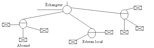 b) L’échangeur : c’est l’intermédiaire entre les différents réseaux locaux et le système à longue distance. Les liaisons se font soit par fils nus, par paires de câbles, par micro-ondes ou par fibres optiques.