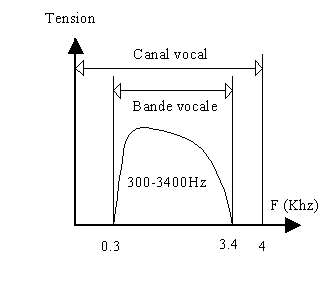 Le signal subit une atténuation pour les fréquences élevées. Pour cette raison, le canal vocal est limité à 4 Khz.