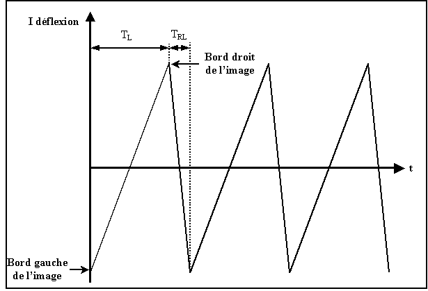 Cette partie du téléviseur est encore appelée base de temps lignes. La base de temps horizontale a pour mission d'assurer le déplacement, par l'intermédiaire des bobines de déviation lignes, du faisceau d'électrons ligne par ligne, et de gauche à droite pendant le temps d'aller où le faisceau est modulé par les signaux vidéo. Pendant le retour, le faisceau est "coupé".
