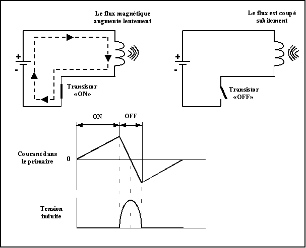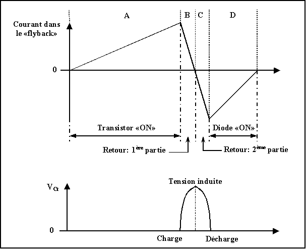 * Courant dans le flyback -1e temps- (transistor "ON")