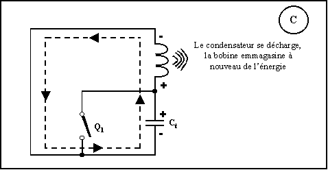 Pendant la décharge de C1, le collecteur de Q1 est à 0 Volt, la diode D1 conduit et coupe la source à courant constant. C1 déchargé, les transistors Q1 et Q2 sont à nouveau bloqués et le cycle recommence.