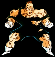 Nappa is one of the last surviving Saiyans. He accompanies Vegeta to Earth. He reakes havoc on Earth, while awaiting Goku. He kills Tien and Piccolo and indirectly kills Chaotzu and Yamcha. He helped train Vegeta, but does not compare to Vegeta power-wise. He nearly kills Gohan and Krillin, but Goku arrives and injures Nappa's leg. Vegeta then kills Nappa and begins to fight with Goku.