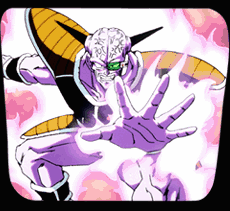 The leader of Ginyu Force. Ginyu is first seen taking the Dragon Balls back to Frieza. When his comrads are dead (minus Jeice) he fights against goku, but when the fight appears to be finished Ginyu switches bodies with Goku. He is defeated by Vegeta, Krillin, and Gohan, when he is found out. He ends up in the body of a Namekian Toad. Suites him right!