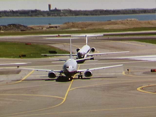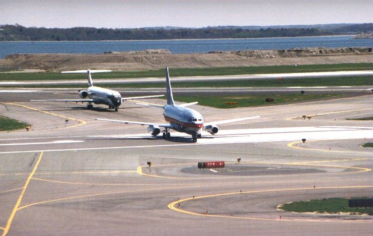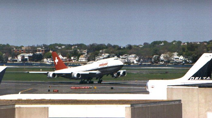Air 747 just having arrived at Logan on Runway 27, headed for the