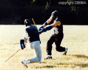 all occurred fairly recently under the pressure of open competition. There certainly is a lot of controversy over some of these developments. The proponents of the martial 'arts' having big problems with the proponents of the martial 'sports'. In particular, tactics and attack/defense modes have changed to allow victory in a forum that has strict rules of engagement. Watch the traditional karate people dump on the TKD people of the WTF persuasion to catch the most spirited of these debates. On the other hand, the martial 'arts' have had less testing because the functioning modalities of modern warfare involve -- well, you know -- guns, planes, bombs -- do not leave a lot of room for someone with a great side kick. The most interesting developments for kobudo are the emergence of tournaments using protective gear and padded weapons, notably the bo and nunchuks, and the work of the Dog Brothers with their full contact stick fighting. The only other area that I feel needs addressing as far as kata are concerned is the stylist schism which occurs at the tournament level. Just as we see the divergence of 'art' and 'sport', we see the development of kata for the purposes of winning tournaments. On the one hand this usually means a lot of spectacular moves. Many of these moves, usually twirly type stuff are fascinating and breath-taking to watch but are such high risk that their use in combat would be foolhardy. The other issue is that to facilitate the fancy moves, the weapons themselves are being modified to be lighter, faster, shorter, smaller and more maneuverable. The main problem with this trend is that by altering the weight of the weapon you change the inherent characteristics of what you can do with it. You can twirl a light bo faster but you could not use it for crushing blows, and the weight would naturally change the ways in which you recovered from non-landing blows. |