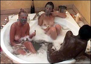 Big Brother saw its steamiest scenes ever on 27th June when Amma, Helen and Elizabeth stripped naked during a boozy party during one of the hottest nights of the year. Big Brother provided bottles of champagne and loads of chocolates for Elizabeth's 27th birthday. And then the girls lost their inhibitions and their clothes. Big Brother also laid on a range of posh beauty treatments for the bash and it wasn't long before the girls chucked off their bathrobes to make them most of them. The sozzled group got together again in the garden for a 2am chat which turned into a 4am singalong of Beatles hits. Later Amma and Liz gave eviction nominee Bubble a fake tan before finally collapsing into bed at an incredible 7am.
