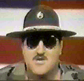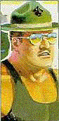 Submitted by: Melendez, Rafael J. "Sgt. Slaughter thinks it is his personal mission to kick the butt of every boot in Pendleton. This guy can drill his trainees into the ground 72 hours straight before he breaks a sweat. His favorite pastime is marching over the boys' backs while they do finger pushups in the mud, and spewing out brutal verbalities. He has been known to ride his tank through enemy fortresses rather than blow them up just because it is more fun. They say he eats nails and spits out dumdum bullets. They say he cleans his teeth with barbed wire, brushes his hair with a rattail file, and shaves with a blowtorch. Everything and everywhere is battlefield for Sgt. Slaughter."
