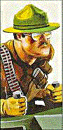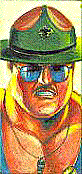 Code Name: Sgt. Slaughter Drill Instructor File Name: CLASSIFIED TOP SECRET SN: 817-76-981 Primary Military Specialty: Infantry/Drill Instructor Secondary Military Specialty: Survival Trainer Birthplace: Parris Island, South Carolina Grade: E-8 -------------------- All the Joes are super-tough, and they've been through the roughest, most grueling training to become the most skilled specialists in the world. Because of this, just about every member of the G.I. Joe team is qualified to be a drill instructor, meaning it takes a special kind of heavy duty honcho to keep 'em squared away---a master of drill training to weld these stiff-necked tenderfoot Americans into the most stout and honorable positions in the Elite Mobile Strike Force. Sgt. Slaughter fits the bill the way his bullet head fits his Smokey the Bear hat. Slaughter is the only G.I. Joe drill instructor with the full authorization to drive the new Joe artillery machinery. Though all G.I. Joe personnel are capable of driving these vehicles, only the Sarge knows how to beat on one to get the most out of it. That's why he's the head D.I.--- because he knows exactly how to break in something new! He's also the only Joe with the nerve to pull even the high brass into an 0500 crawl through a mudhole with artillery fire blaring overhead...even General Hawk isn't safe from the Sarge's training regiment. After the Joes were disbanded, Sgt. Slaughter was granted seniority and promoted to a desk job with the Pentagon. After about a month, the Sarge had successfully "convinced" the brass that he wasn't ready to slip into a job as a pencil-pusher for the rest of his career. Slaughter was returned to Parris Island, acting as a drill sergeant---much to many new recruit's chagrin---until the Joes reformed. The Sarge has returned to what he does best, whipping troops into shape and intimidating Cobras with his mere presence. Let's face it---the man be rough and takes no guff. -------------------- Submitted by: Delgado, Hector X. "They say he cut his teeth on a bogey wheel from a Patton tank and that his first words were 'Semper Fi'. They say when the Sarge dresses down a boot in Camp LeJeune, the trainees cringe all the way to Pendleton; most boots would rather dive for apples in the grease trap than cross the Sarge. They say he can blow a month's pay in one night in Thule, Greenland. Of course, 'jarheads' are prone to exaggeration. We all know it is impossible to blow a month's pay in Thule, Greenland."